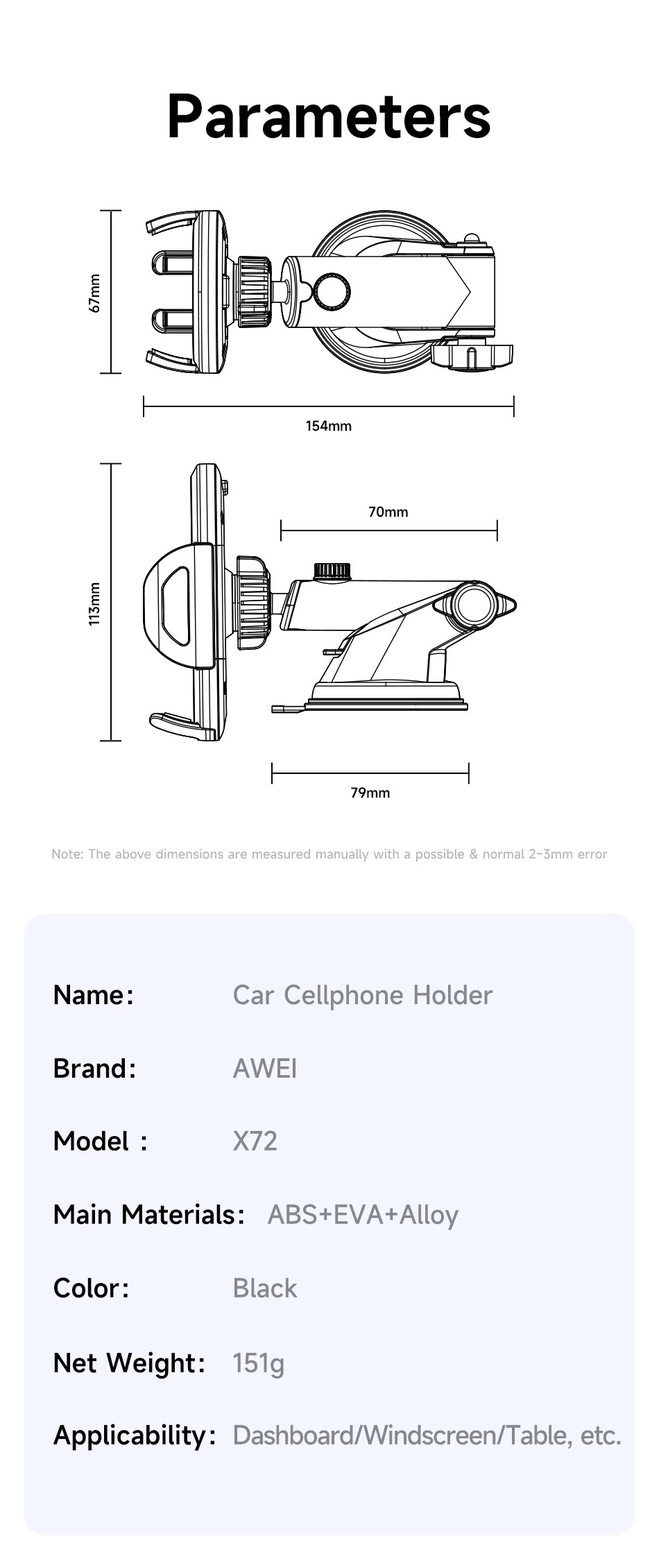 AWEI Suction Cup Type Simple Car Mobile Phone Holder