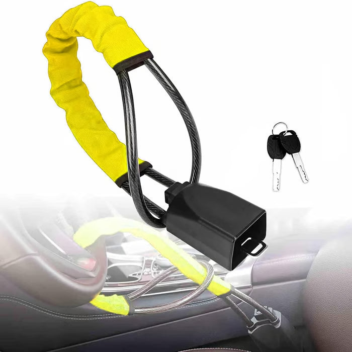 This ultra-tough steering wheel lock features military-grade steel and an anti-pry mechanism that defeats even bolt cutters. Visible deterrence meets brute strength—giving thieves zero chance!