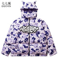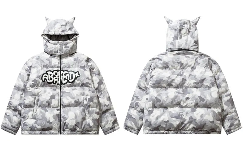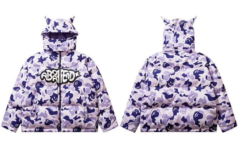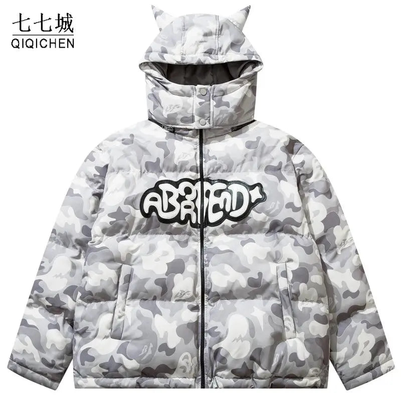 Hip Hop Removable Hood Jacket Parkas Streetwear Camouflage Devil Horn Thicken Warm Bubble Padded Coats Harajuku Puffer Jackets