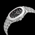 Nautilus watch, an elegant sports watch with a rounded octagonal bezel, porthole case, and embossed dial.