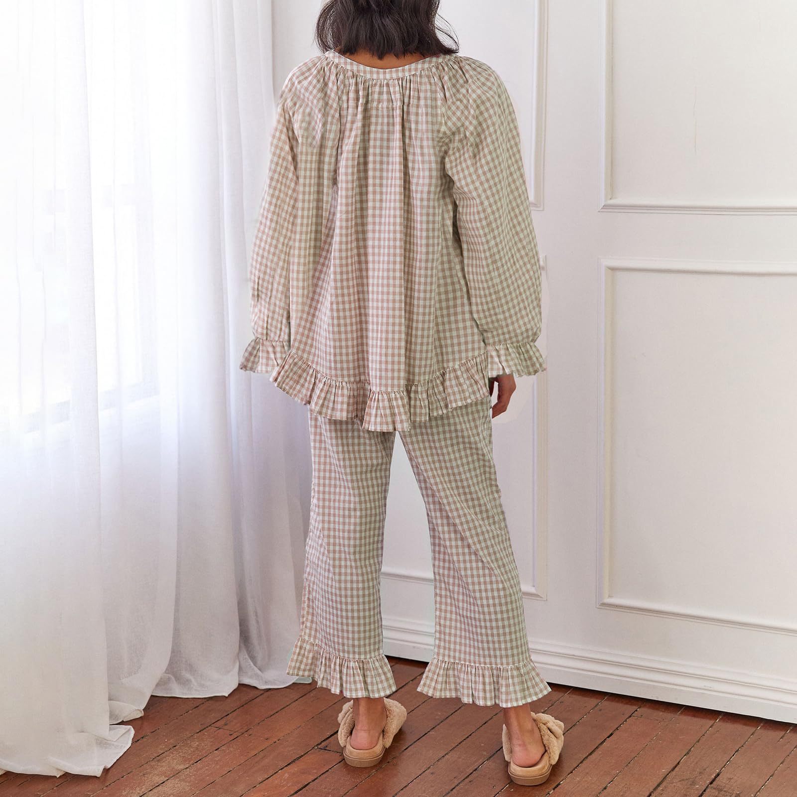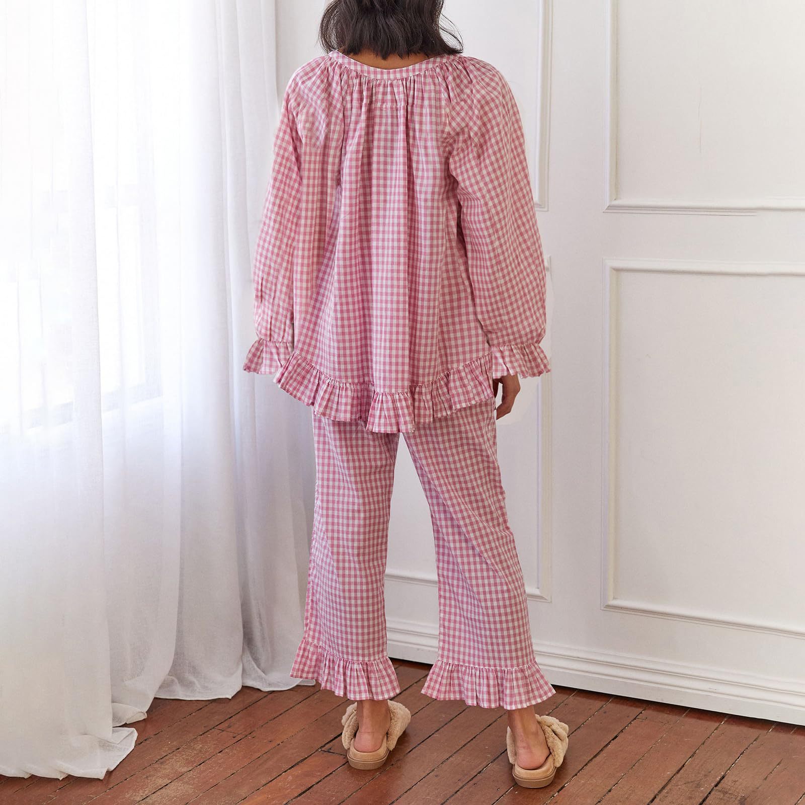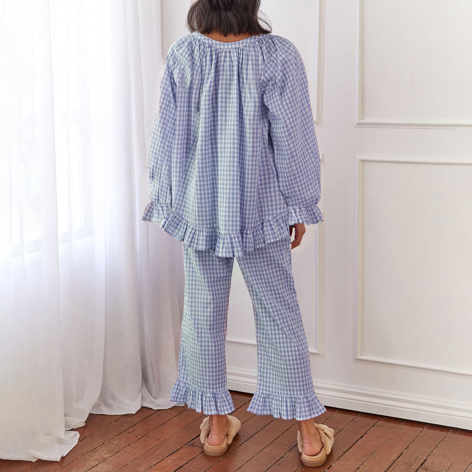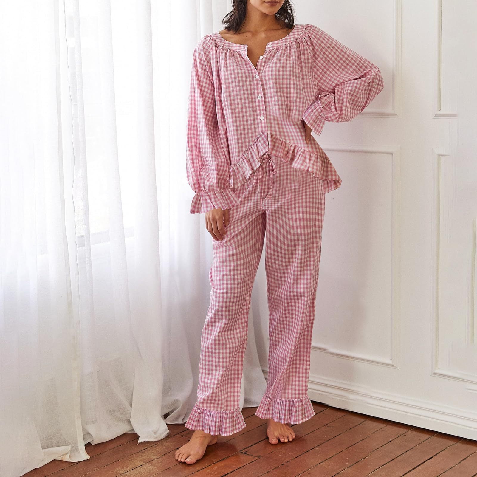 Women's Casual Plaid 2-piece Set Short Sleeve Ruffled Top And Pants